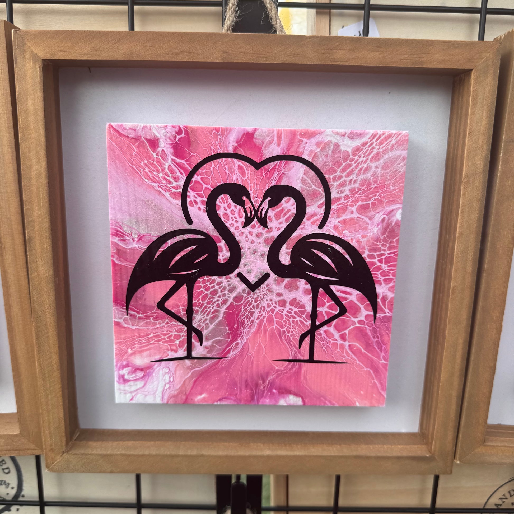 8" Square Framed Art - Pinky (Flamingos)